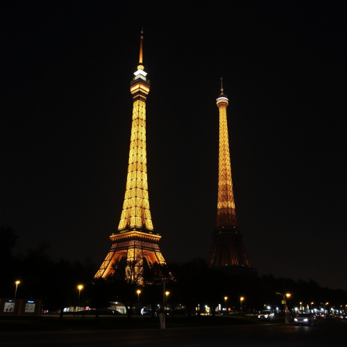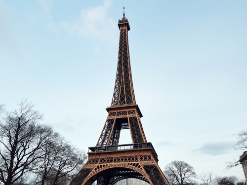 Eiffel Tower flat illustration, not too complex, modern, 4k, epic composition, flat vector art illustration, long shot --no text, fonts, letters, words, watermark --ar 5:7