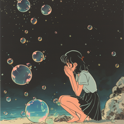 A girl stopped, hands on her knees, catching her breath, the bubbles floating away, Rumiko Takahashi --v 6.0