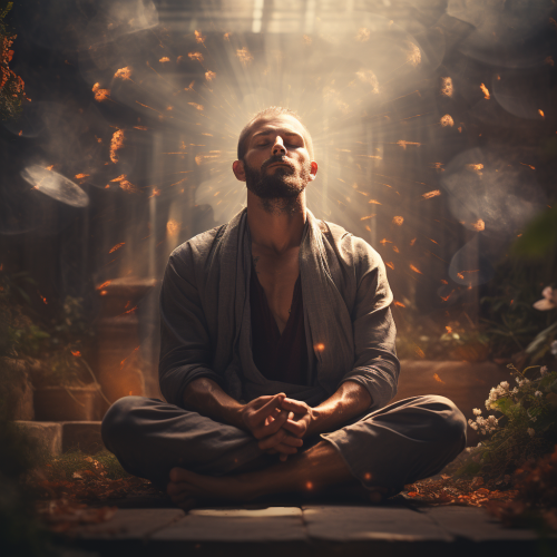 a man taking a big nourishing breath while meditating, zen --s 250 --v 5.2