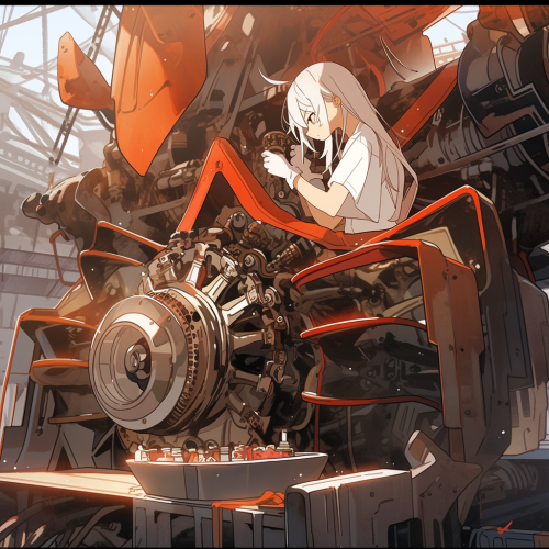 anime mechanic repairing the engine of a massive battleship --niji 5