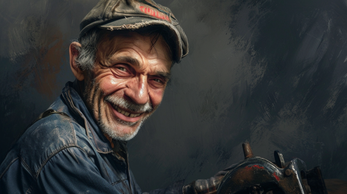 car mechanic portrait, grey clothes, minimal background, with a wrench, --ar 16:9 --v 6.0
