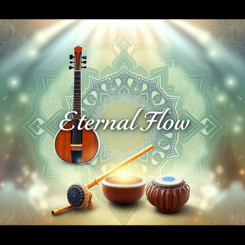 Ganesha, in the style of Indian art, holding an open book in his hand and sitting next to a large mandala clock that shows the passage of time in the background. The painting style is Ganic, with an orange tone and a gold-yellow background. The image conveys a sense of joyous wisdom and balance. It should be a high-resolution, print-quality image.