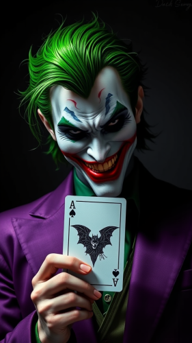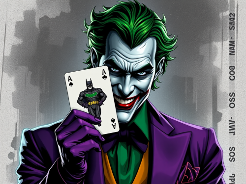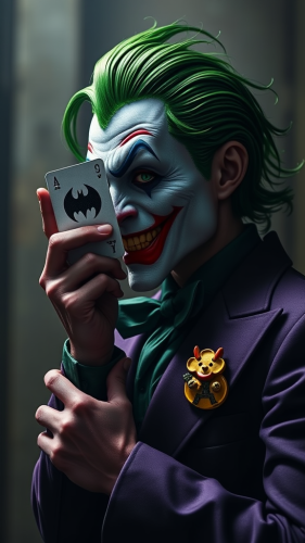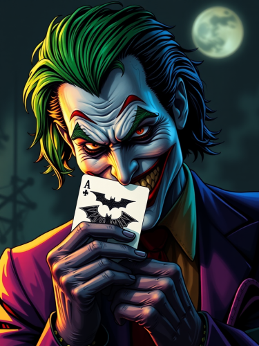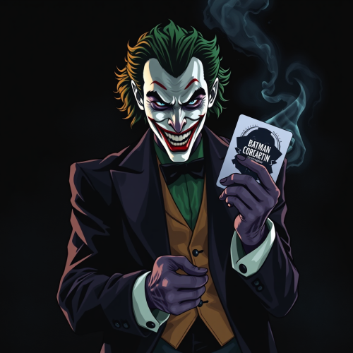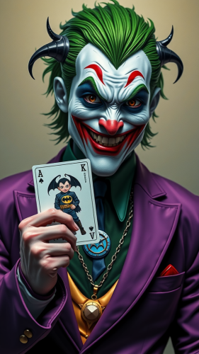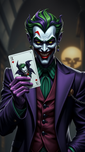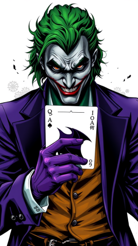 Joker from Batman, he is wearing a green suit and a visible purple tie, there is a question mark on the tie, he has purple gloves, purple shoes, he stands on a cane, full body, in cartoon style --ar 3:4 --no question mark on the jacket --v 6.0