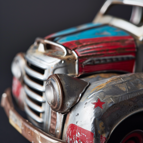 Atomic age tin toy, race truck, close-up, studio light, 35mm --s 10 --v 6.0