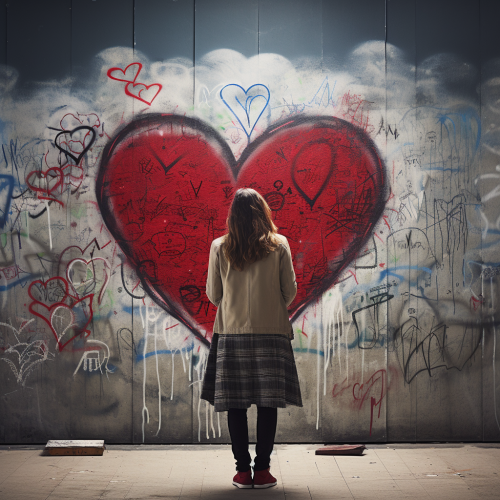 woman heart out red pink sparkles liquids hearts mystical themed urban city Los Angeles Santa Monica