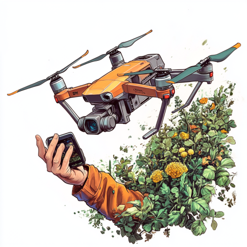 a hand illustration of a DJI drone that is a gardener, should be a hand illustration from a childrens book, PNG with white background, 4K high quality