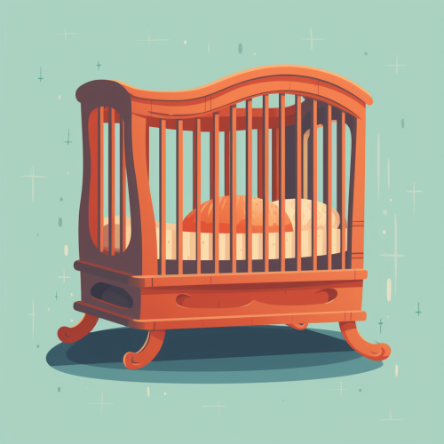 A vectorized illustration of an infants baby crib. The illustration is intended for a children's book.