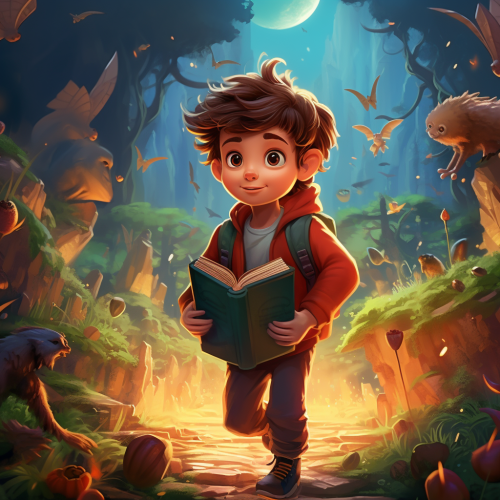 watercolor style, children's illustration, children's book illustration, portrait of a cute, happy hamster in a blue plaid shirt, with an autumn forest in the background --ar 16:9 --v 6.1