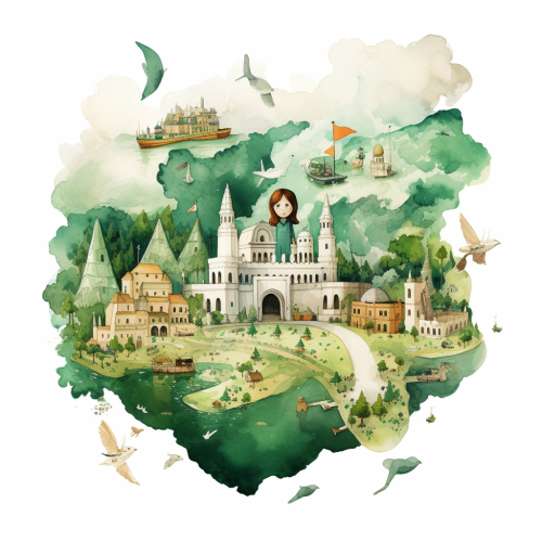 watercolour, design children story book illustration kids illustration childrens book cover, green and white only, faded collage pakistan map with white space in middle bottom