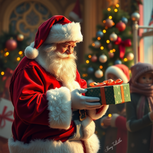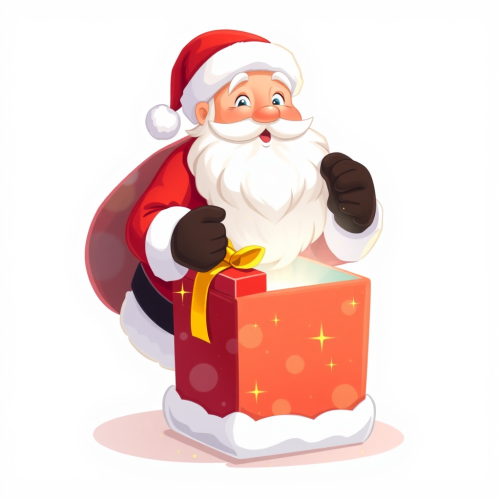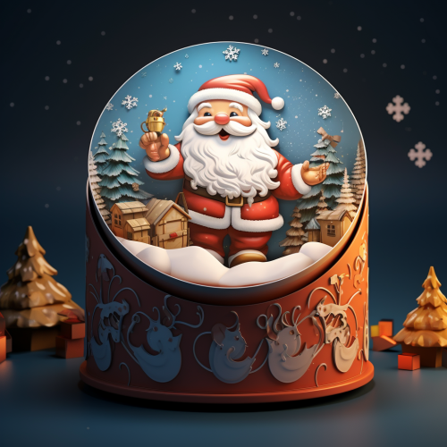 Design a beautiful and unique Christmas gift box. In cartoon form, Santa is placed on the lid of the box 3D stylize very high