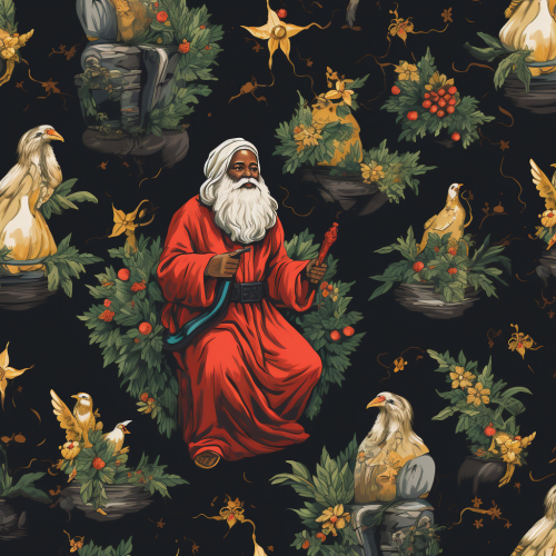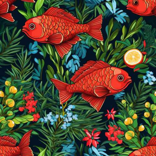 Hawaiian perch colourful tattoo style Christmas themed wrapping paper repeatable pattern --tile
