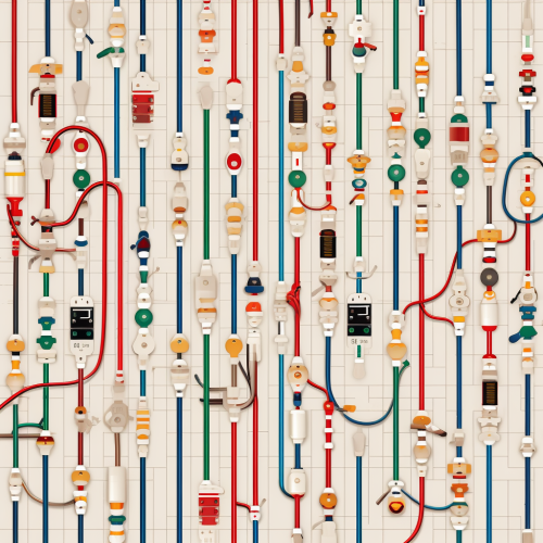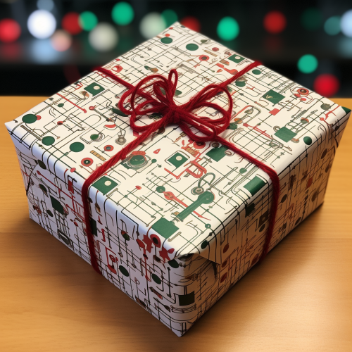 eurorack modular cables Christmas wrapping paper, top-down view, 2d, tileable --style raw