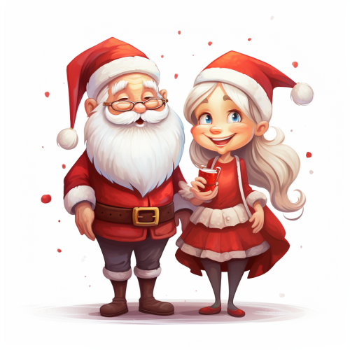 cute mr and mrs santa clause in the style of classic cartoon illustration with detailed character design on white background --v 5.2