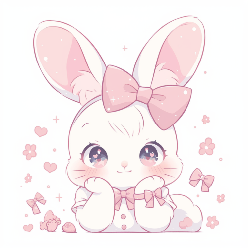 create t-shirt design of cute bunny ,use pink colour,use big line art,vector,line art,anime style, for kids, illustration ,white background --s 550 --niji 6