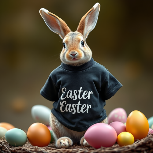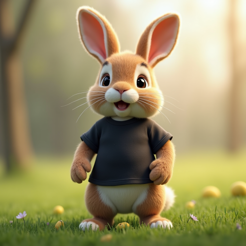 The Cute Easter Bunny in Black T-Shirt