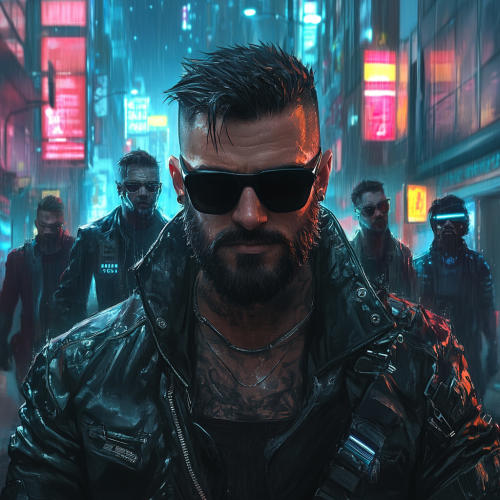 a notorious gang known as the Binary Vipers has gained infamy for its actions against skill shops and skill injectors| futuristic | dramatic scene --style raw --ar 16:9 --s 1000
