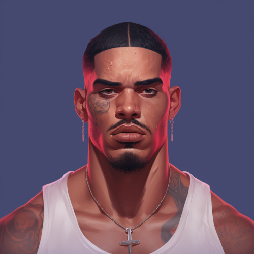 Gangster Crip. Male. Portrait. --style 3fsE3uZyG4D --v 5.2 --no guns