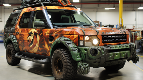 2004 land rover discovery 2 with the head of a dragon --ar 16:9