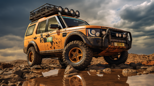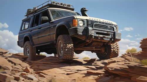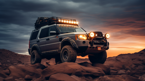 ghetto 2004 land rover discovery, off road, lifted, super cool, hyperrealistic, photography, 8k, cinematic lighting --ar 16:9