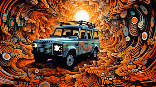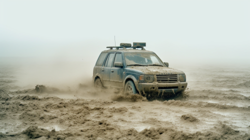 2004 Land Rover Discovery, off road, lifted, panorama, dystopian editorial, brutalism , engulfed by glassy plastic, jade gold obsidian, cinematic overcast colorized --no symmetry --chaos 20 --ar 16:9 --style raw --v 5.2
