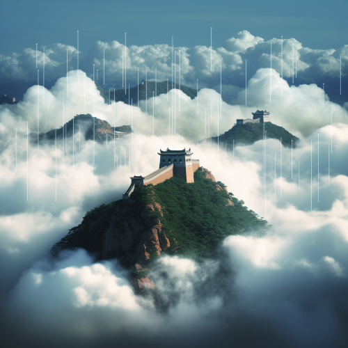 The digital cloud with flowing data streams.