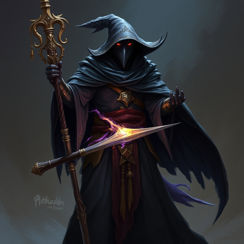 human jackal hybrid creature fantasy art with axe and magic --s 50