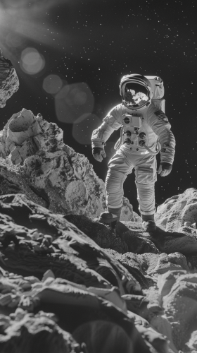 nasa photograph, Hasselblad 500EL Data Camera photograph of an American astronaut on a film set on the lunar surface --ar 9:16 --v 6.0