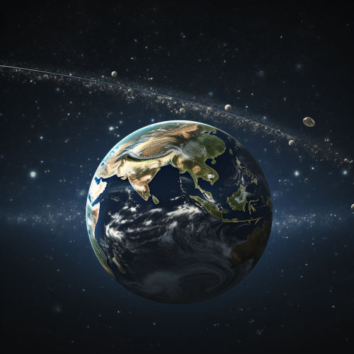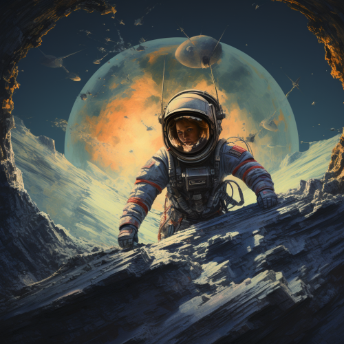 a lunar crater with man landing on the moon and the earth in the background --ar 2:3