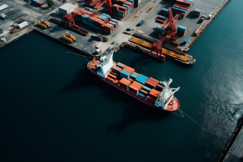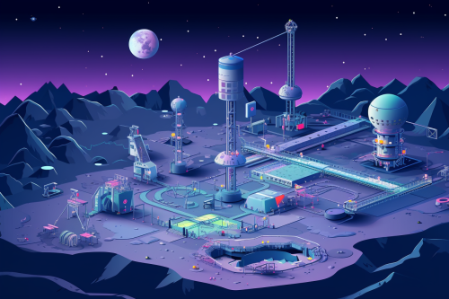 A shipping port on the surface of the Moon. Bird eye view. Shot with canon r5 35mm lens --ar 3:2 --style raw