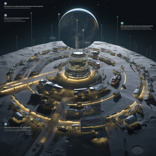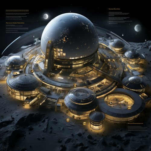 lunar habitit that includes facilities like navigation systems area ,communication systems , mapping , astronomical instruments , backup power , curved , aesthatic