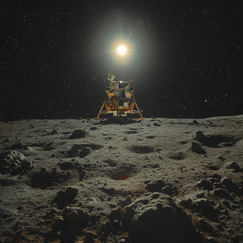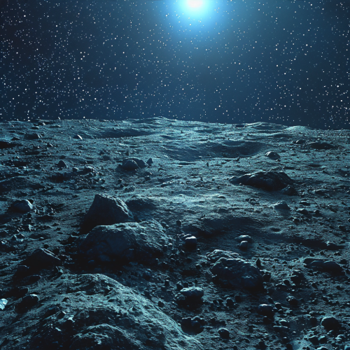 Picture of the lunar surface with a starless and dark sky taken from a lander on the surface --v 6.0 --s 750