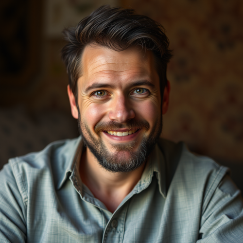 A cover design that conveys the theme of Ghost, a novel has action adventure and mystery, A Love story of Human and Ghost, A puritan man tall, dark brown curling hair, square chin, and brown eyes, six feet tall and woman with Charity auburn hair, tall, well proportioned, with strong limbs, hazel eyes, and a cherubic round face. perhaps on a wooded path-- in the background a rustic Georgian styled farm house with two chimneys, Photorealistic, Photoreal