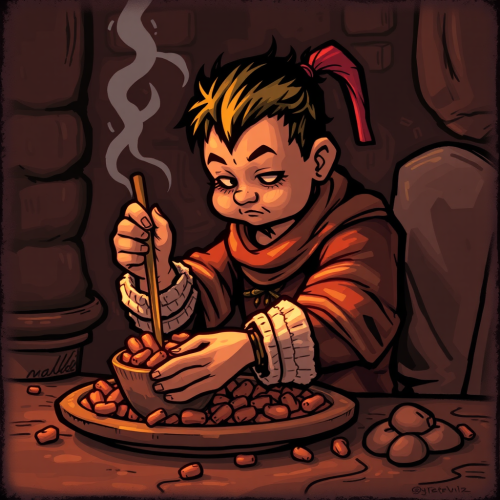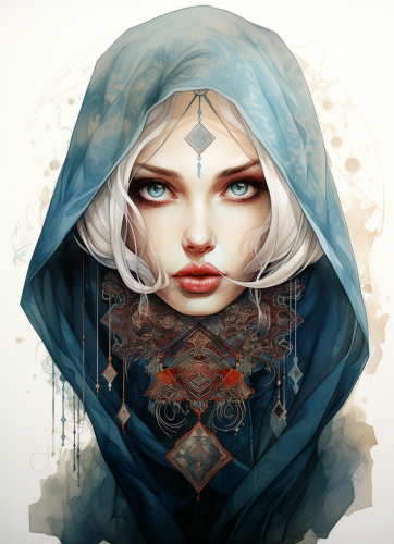 Portrait, Dungeons & Dragons, female Gnome, eccentric inventor and alchemist, oriental, arabic style, known for her crazy inventions and strange potions, Color Ink drawing, Style by Anna Dittmann --ar 8:11