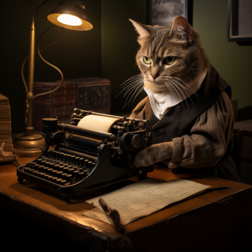 GPT chat befor 100 years Digital old typewriter from 1900s in modern world, new form of writing in old style, old objects in new digitalized world, 3D form of self writing typewriter in blue color scheme with glowing glow and button structure, GPT chat controlling writing, on world scale, Controlled by person in 1890s england outfit --ar 16:9 --style raw --v 6.1