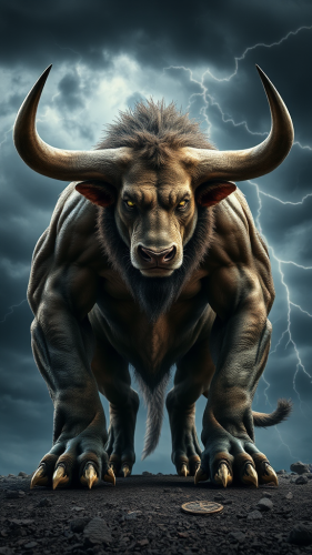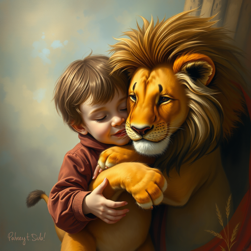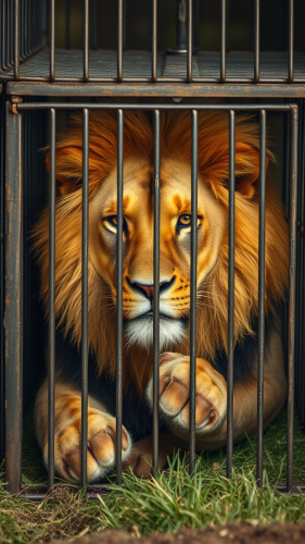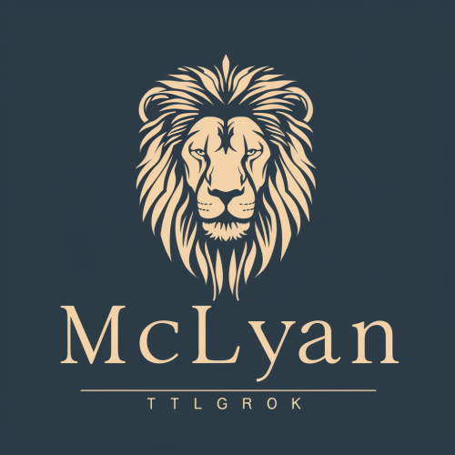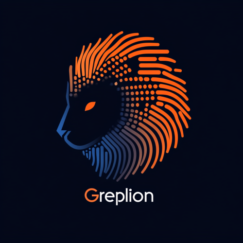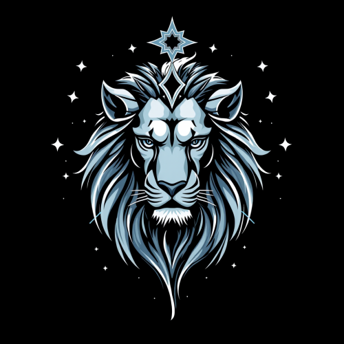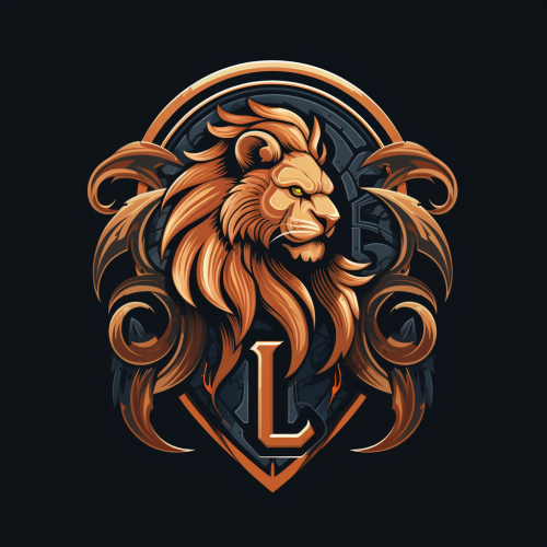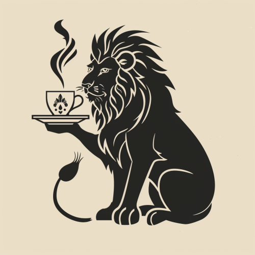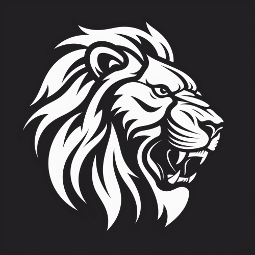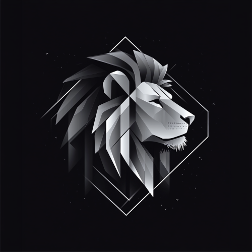 The logo consists of a geometric-style shape, a lion's head, and grey and white lines on a solid background. It has a minimalistic, vector art, flat design in grayscale with line work.