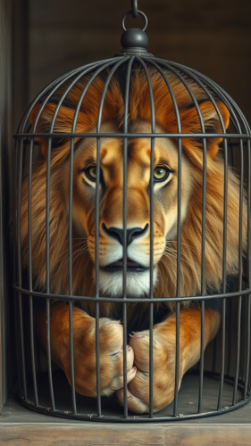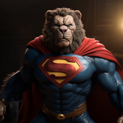 Mopsa The Lion King The Human Version, In Superman Suit, Determined To Go To The Rescue, In A Dark Room, 3D, 16k, real,