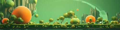 marketing art for a beautiful indie game, orange and green colors, 3d render --ar 4:1 --s 50