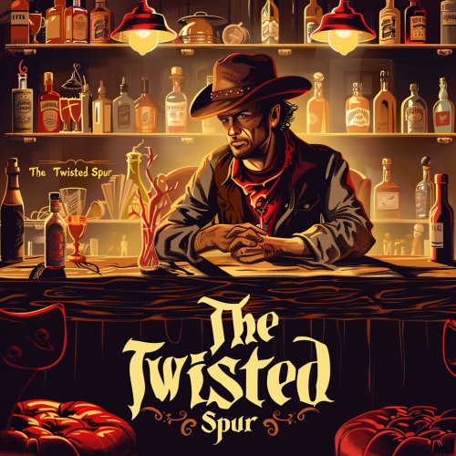 a promotional flyer for a liqour store called "The Twisted Spur", Cowboy themed, western-rodeo inspired. --v 6.0