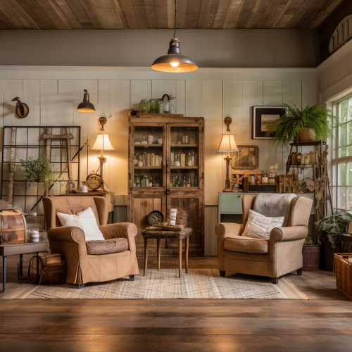 farmhouse interior design photoshoot for advertisement that showcases lighting and wall decor