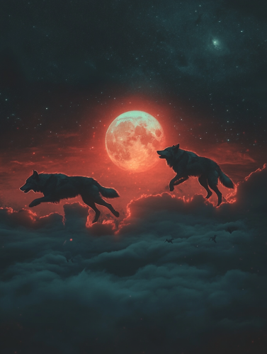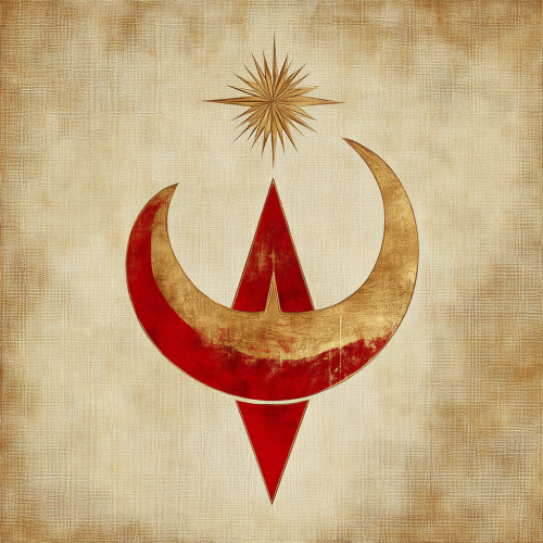 A design featuring a crescent moon cradling the Delta Sigma Theta pyramid, with a single star above it, representing hope and guidance. The star should have rays reaching out, creating a subtle pattern of Delta’s Greek letters. Use red, white, and gold for the moon and star, with soft, flowing lines to create a mystical, ethereal look. --q 0.5