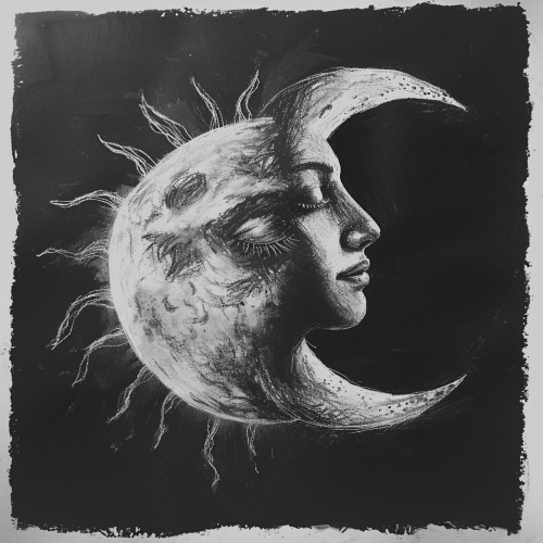 charcoal illustration of sun and moon, very simple, delicate, beautiful
