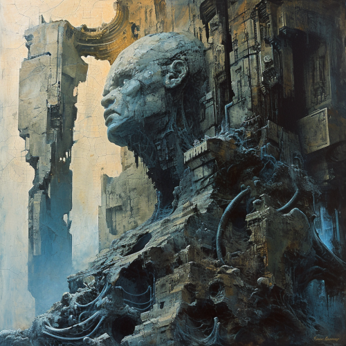 Style of yoji shinkawa and Zdzisław Beksiński, stoneware warped machinery and organic formations cybernetic mutation, feculent discharge altar of madness draining cerulean exsanguination, autistic epic composition high detail futuristic sci fi horror, golden ratio mathematics geometry ornate breath-taking ethereal ominous grotesque, cinematic, magical, awe inspiring, hypermaximalist, hyperdetailed, volumetric ancient ominous lighting, epic --v 6.0