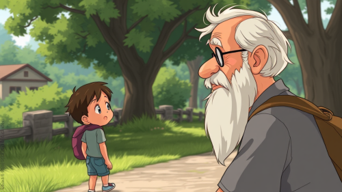 An old, dimly lit house interior with creaky wooden floors and simple furniture. In the background, an unsettling old man with gray hair and a wrinkled face stands in the shadows, looking towards the viewer. In the foreground, a young woman, wide-eyed with fear, holds a blanket or metal bat defensively, her face filled with terror. The lighting is soft and muted, with warm, earthy tones of brown and yellow, creating a tense but realistic atmosphere. No supernatural elements, just the eerie presence of the old man in the house