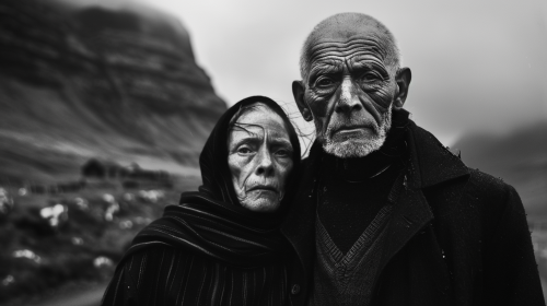 modern Faroese man and woman, 21st century, black and white photograph --ar 16:9