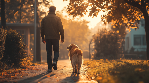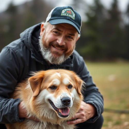 imaging ultra photorealistic 8k imgae showcasing a Quick flashbacks show the man and his dog through the years: playing fetch, going on walks, and celebrating birthdays together. Each moment highlights their companionship and joy. --ar 16:9 --stylize 200