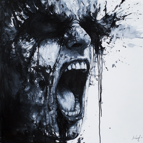 what is fear vivid depiction of fear, horror, abject terror, pen and ink watercolor, black and white wash, professional artist, dark, moody, 3:4 ratio, museum gallery painting, sharp contrast and vokumetric lighting