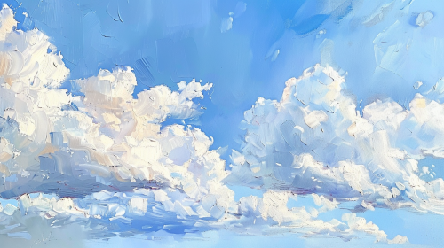 plein air painting of clouds, blue sky, painterly impasto brushstrokes, impressionist, oil on canvas --ar 16:9