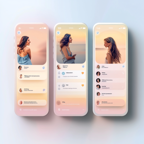 UI design for a dating app chatting thread list page, maintaining a clean, simple, and modern aesthetic with a youthful, translucent feel. Display a list of conversation threads as rounded rectangular cards with a soft gradient background and subtle drop shadows, creating a sense of depth. Each card should include a circular user photo thumbnail on the left, with the user’s name, a brief message preview, and a timestamp next to it. Incorporate small, minimalistic icons for unread messages or online status. Use soft pastels and warm tones to align with the romantic and inviting theme. The background should have a blurred, airy effect to focus attention on the chat threads, evoking a light, friendly, and approachable ambiance.