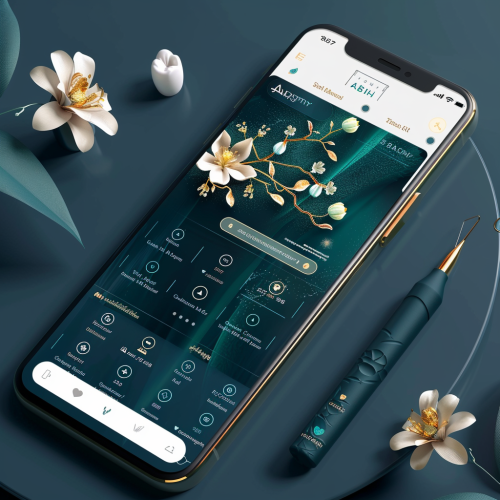 UI UX interface ui/ux for a casual mobile app luxury design for oral care app. It will include oral higiene tracker (with ability to add symptoms and dental visits). Use white and dark turquise colors. Add a little of gold and jasmin flower details --v 6.0