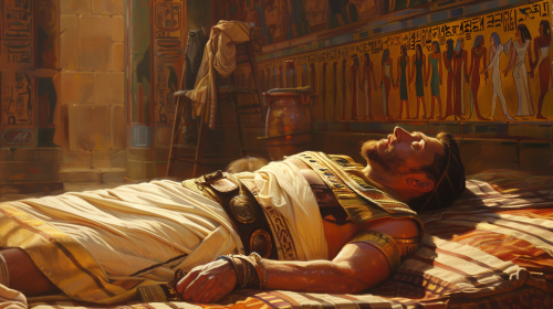 joseph a young jewish man interpretting king pharaoh's dream --ar 16:9 --v 6.0 --style raw